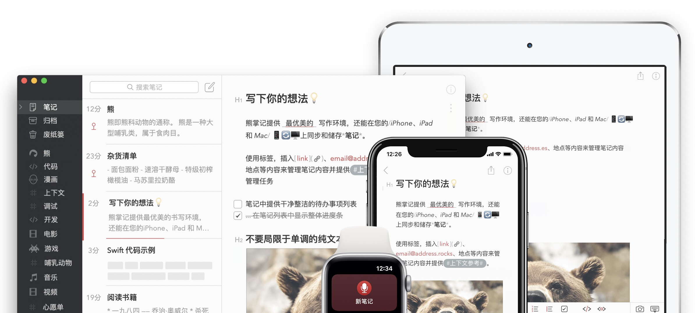 感谢开发者们源源不断的创意,为我们提供了极为丰富的工具选择。工具的多样,让 Markdown 能渗透进更多样的场景。Write once, export everywhere:写博客、写邮件、排推文、做 PPT 等。