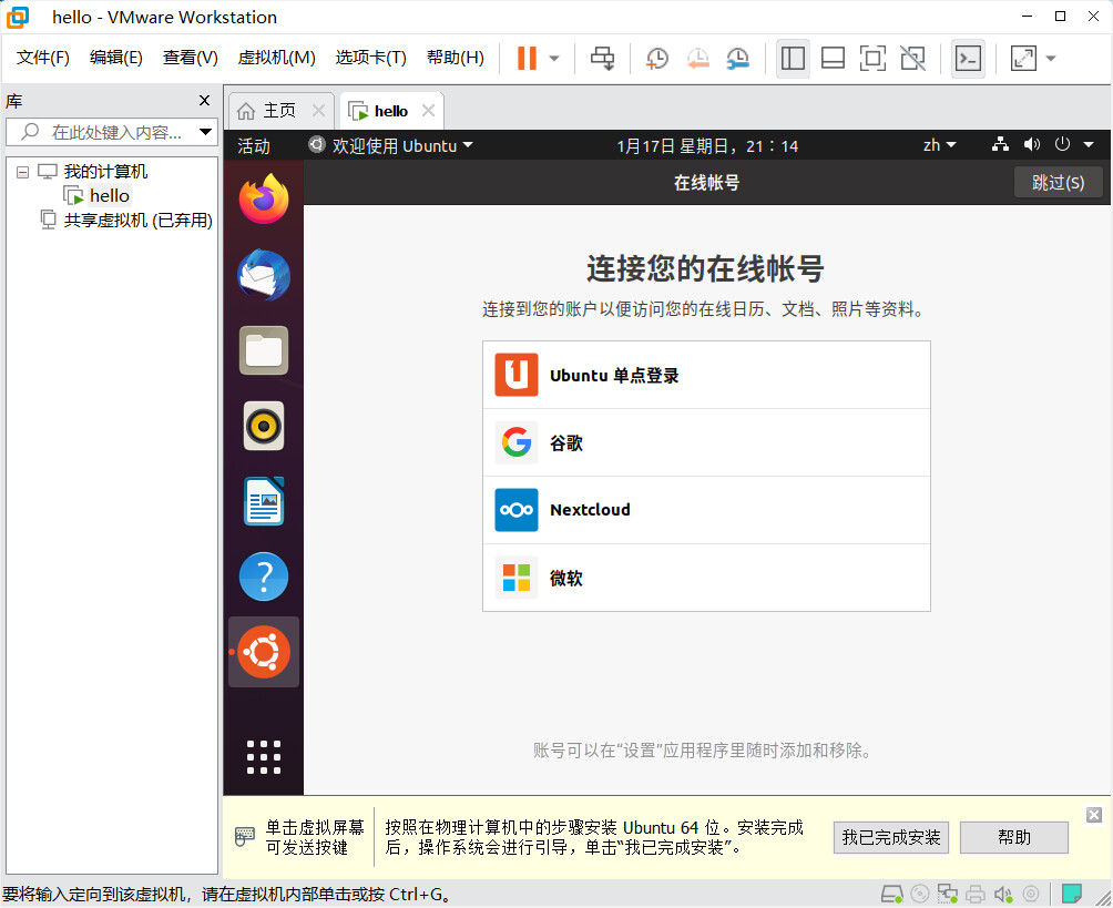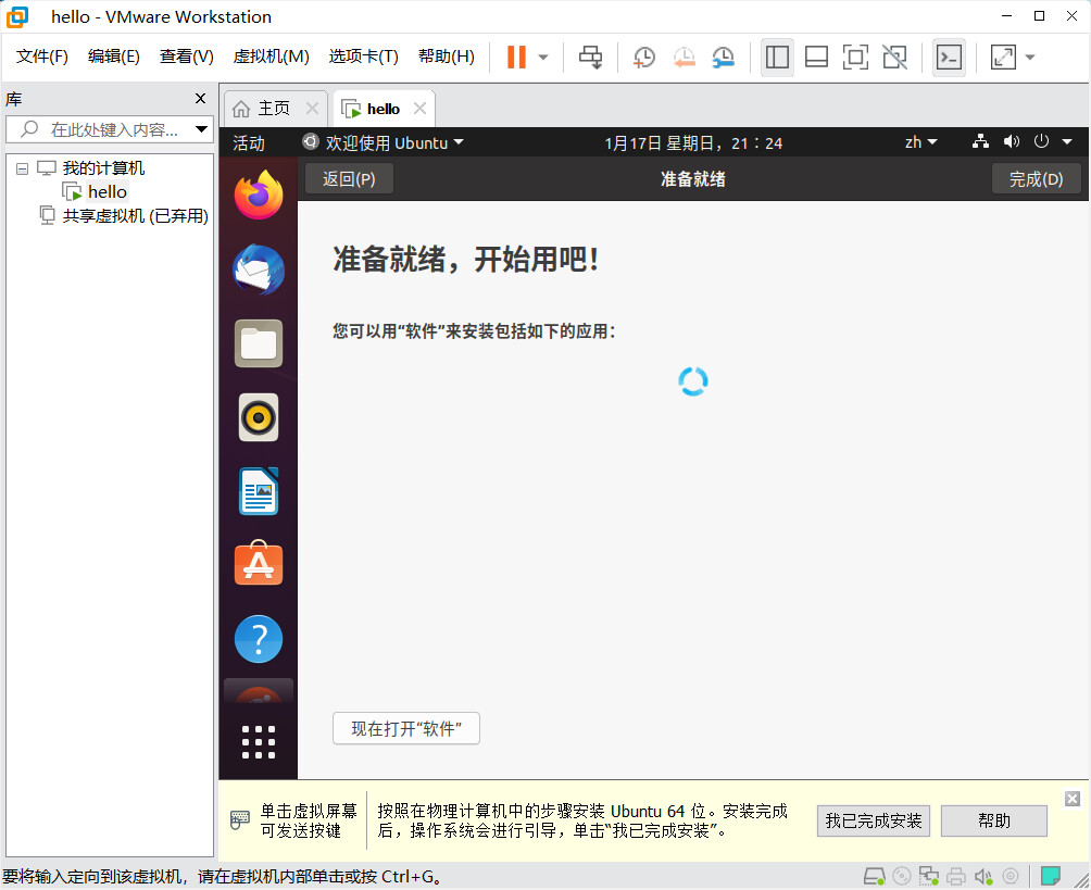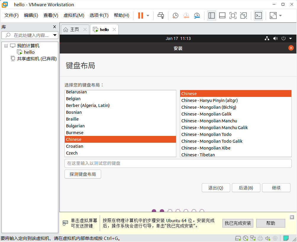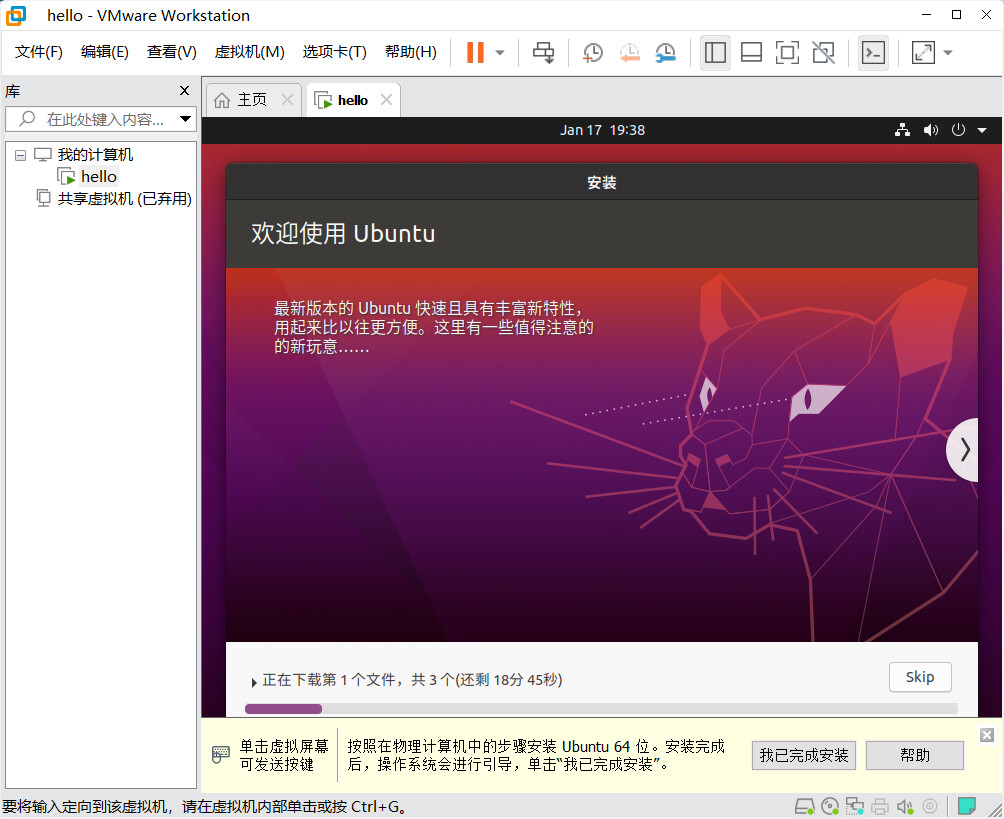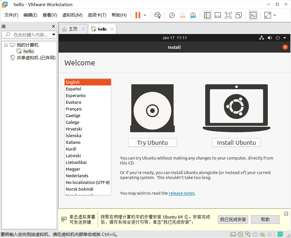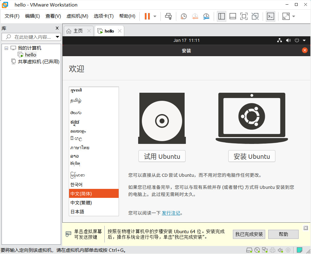 开启虚拟机,安装 Ubuntu
