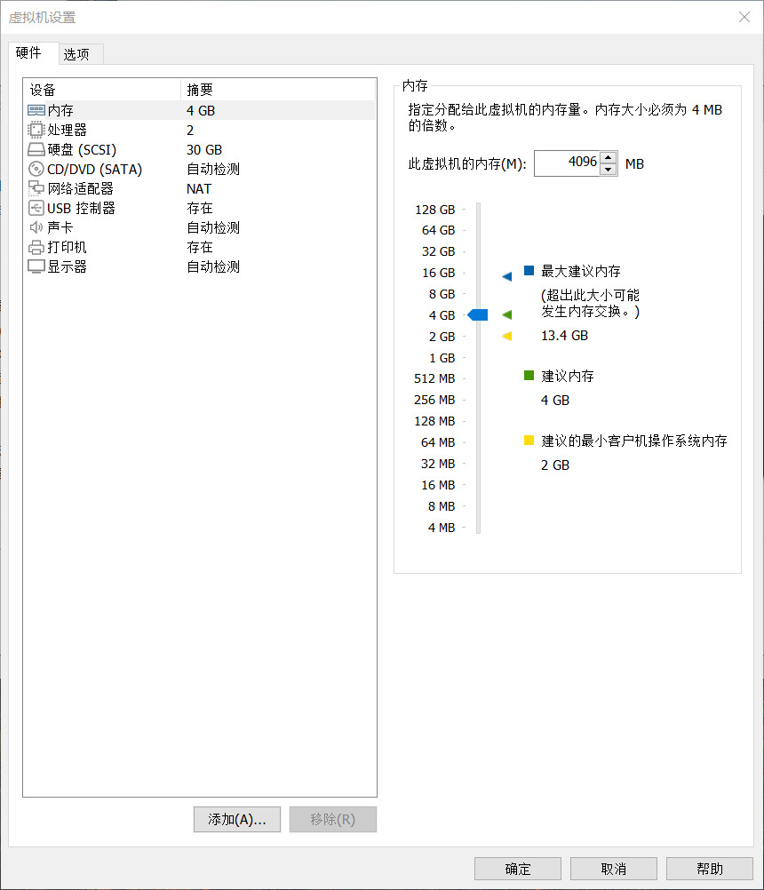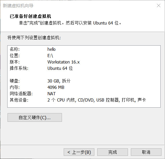 点击“完成”,编辑虚拟机设置: