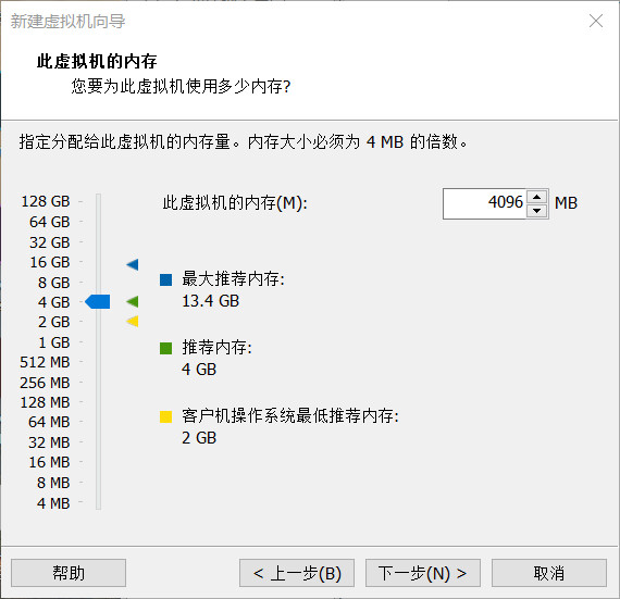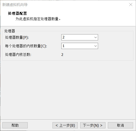 默认分配 2 个处理器、每个处理器 1 个内核,进行下一步,内存配置: