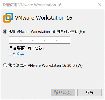 输入 VMware Workstation 16 的许可证密钥: