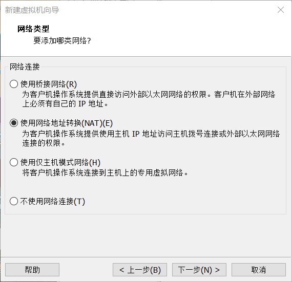 分配 4GB 内存,进行下一步,选择网络类型: